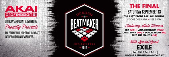 AUSTRALASIAN BEATMAKER INVITATIONAL FINAL @ THE ESPY, MELBOURNE SATURDAY SEPTEMBER 13TH